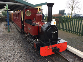 Talking of mince pies, the traditional EVLR Tea & Cake turned into the Tea & Mince Pie today - how very festive! Its always nice to enjoy a cuppa' by the fireside...Just prior to departure with the 3pm trip, we changed the "Santa Special" headboard for the very nice Midland-looking lamp. The light was much dimmer than the photographs portray as the clouds were beginning to settle in readiness for a Wintry evening...